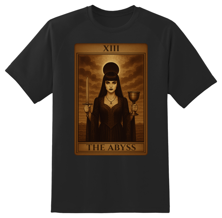 Abyss Ritual pieces are produced in small runs, with care and intention at every stage. Each garment is printed to order and finished by hand.